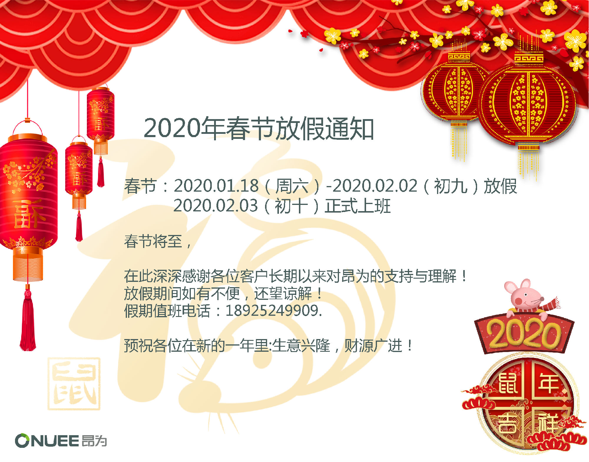 2020深圳昂為春節(jié)放假通知