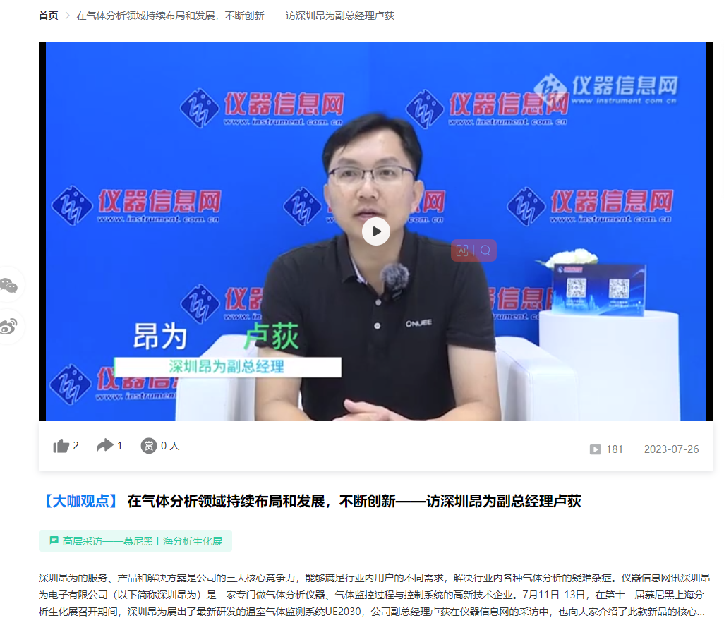 儀器信息網(wǎng):在氣體分析領(lǐng)域持續(xù)布局和發(fā)展,不斷創(chuàng)新——訪深圳昂為副總經(jīng)理盧荻